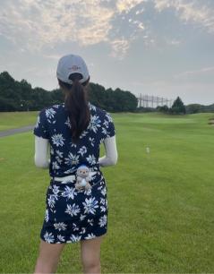 この日は私も、キャロウェイの新作ウェアを着用してラウンド。大きな花柄が特徴のセットアップで、所々にキラキラがついているところがポイント。可愛いウェアを着るだけでテンションがアガる!
