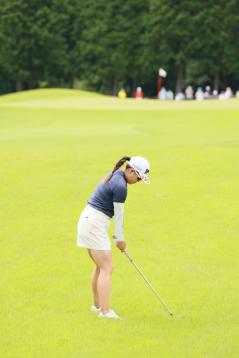 勝みなみのアイアンスイング(ラフ)|フォロー①