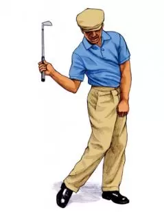 ホーガンは普段からシャフトを寝かせてフェースを開き、ヘッドを遅らせるダウンのイメージのシャドースイングを繰り返していた。