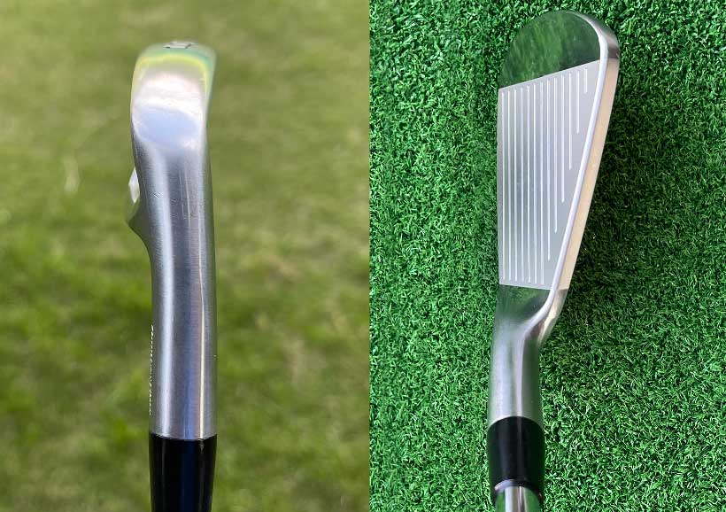 少しだけグースが入っており、捕まる感じもありつつ、方向性も出しやすい形状です。キャビティ部分は全番手「デュアルワイドポケット」という構造になっており、トゥ側とヒール側をくり抜くことで低重心を実現しています。