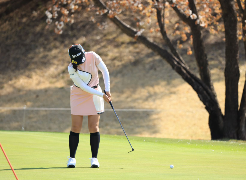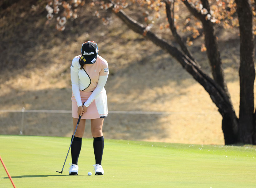 菅沼菜々のパッティングストローク(正面)|インパクト
