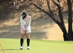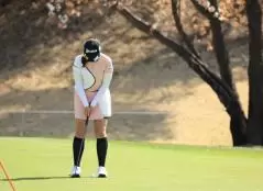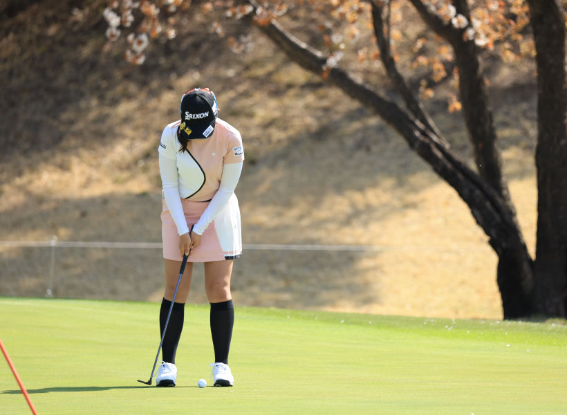 菅沼菜々のパッティングストローク(正面)|フィニッシュ