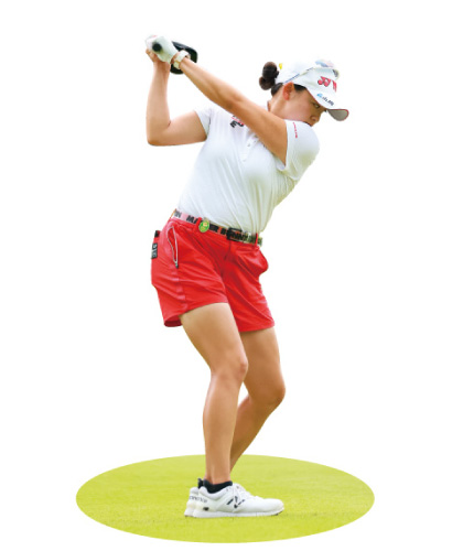 彼女のようなダウンスイング時の完璧な腕の引き込みは、アマチュアゴルファーがそうそうマネできるものではありませんが、少しでも近づきたいなら、トップの形を参考にするのが一番です。