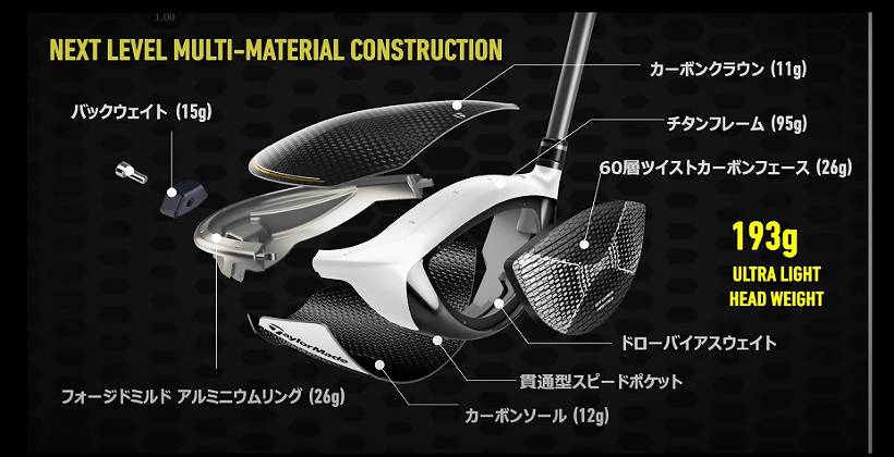 簡単に言うと、ステルスのカーボンフェースとSIM2の構造を合体させたモデル、ということですね。一番の売りとなるのは、やっぱりこの複雑な「ネクストレベルマルチマテリアルコンストラクション」じゃないかなと思います。