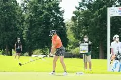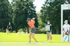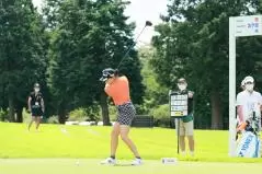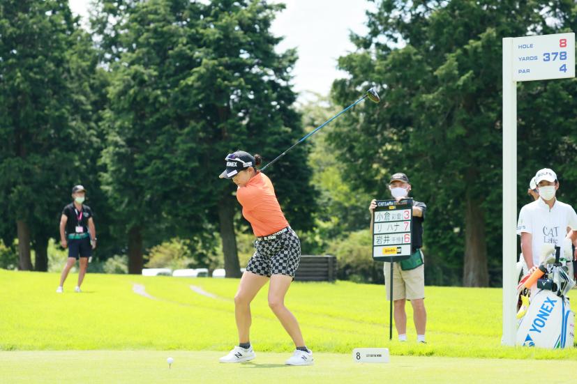岩井千怜のドライバースイング(斜め前方)|フォロー①