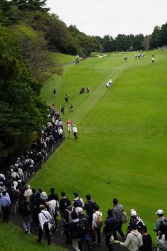 松山英樹は初日も1オーバーという満足できないスコアだったはずだが、遅くまで残ってくれた100名以上のファンにサインをするという神対応を見せてくれていた。