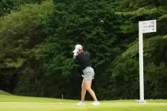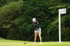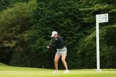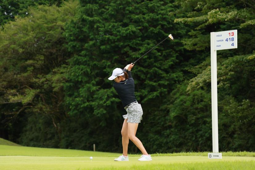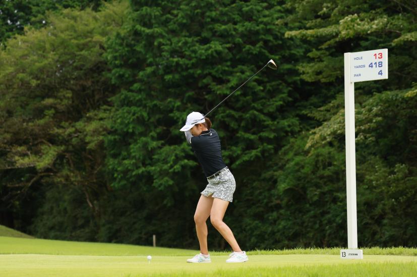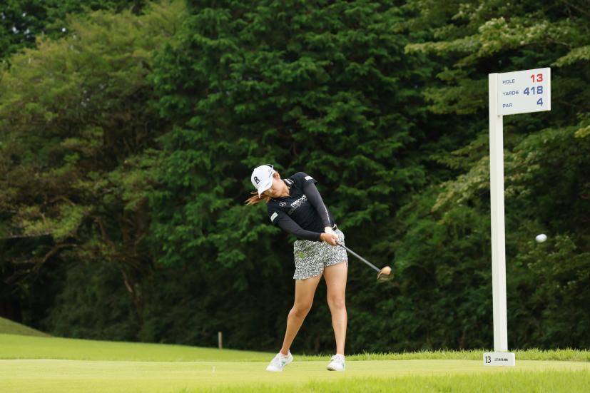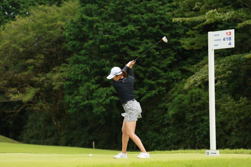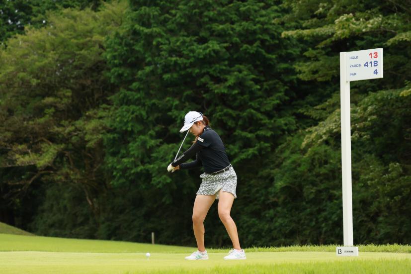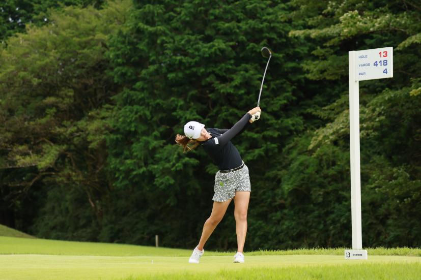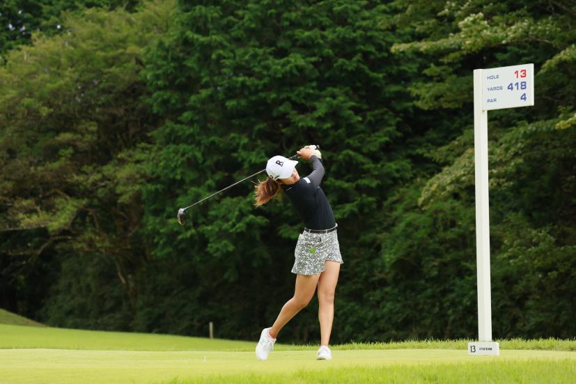稲見萌寧のドライバースイング(斜め前方)|フォロー①