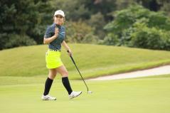 蛭田みな美は1番ホールでいきなりのバーディを奪い、スコアをひとつ伸ばして11アンダーとしている。岩井明愛は5番ホール・パー4で長いバーディパットをきれいに沈めて、こちらも首位と2打差の11アンダー・2位タイに。