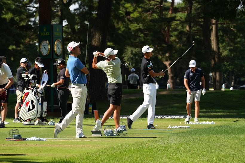 ショットではやはりトラックマン等の弾道測定器を使ったり、スマホでスイングをチェックしていました。ラウンド後もパター、ショット、アプローチの練習をする選手が多かったです。私がゴルフ場を出たのは閉門時間の17時前でしたが、中島啓太、河本力、岩崎亜久竜がまだ練習をしていました。