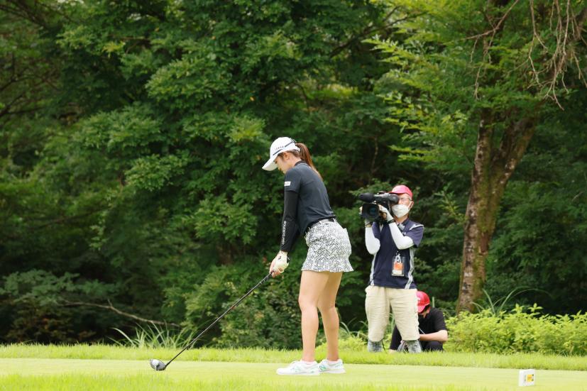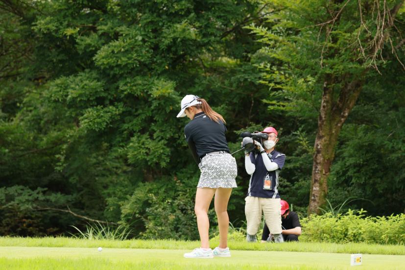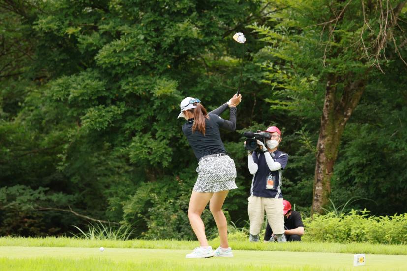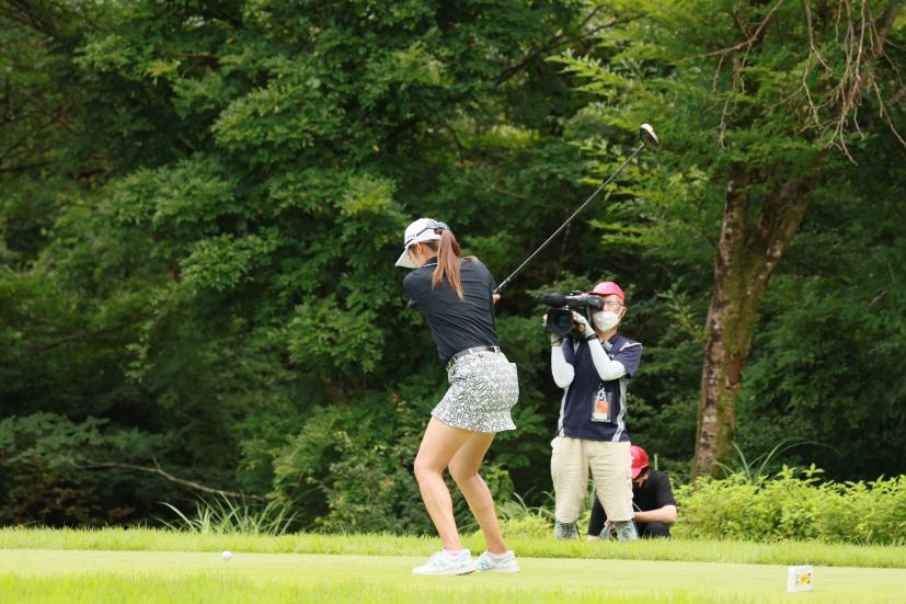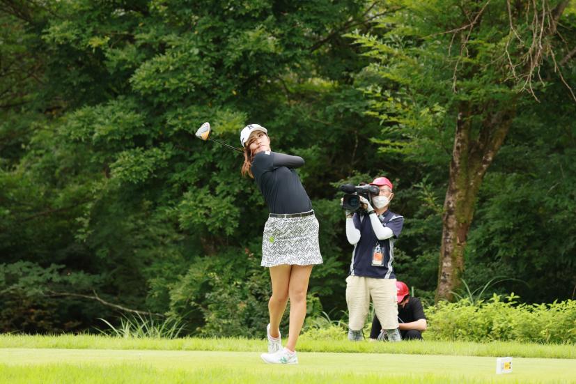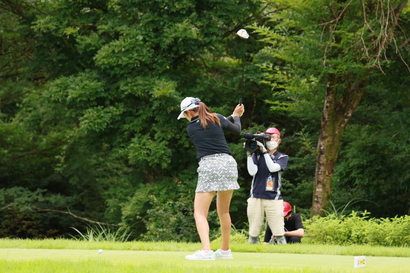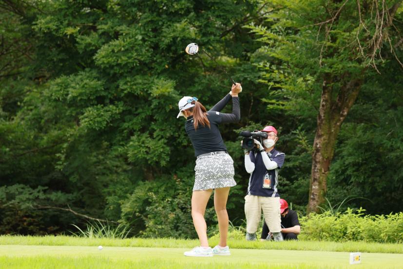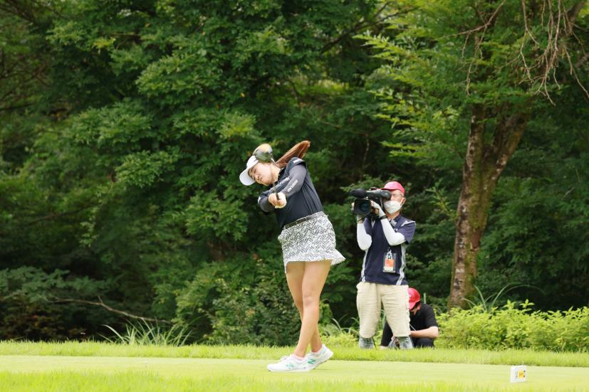 稲見萌寧のドライバースイング(斜め前方)|フォロー①