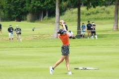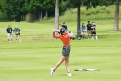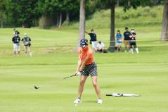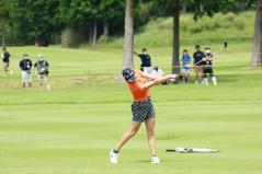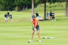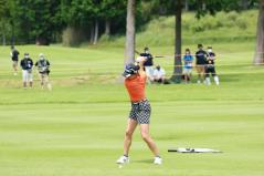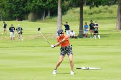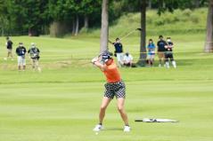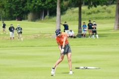 岩井千怜のフェアウェイウッドスイング(正面)|フォロー①