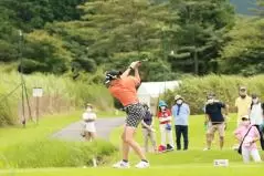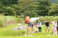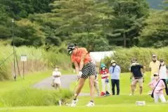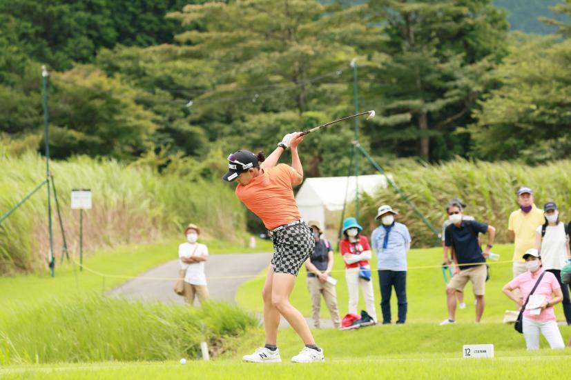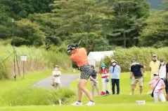 岩井千怜のアイアンスイング(斜め前方)|バックスイング①