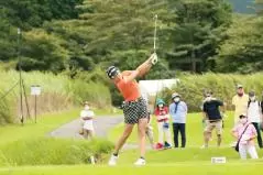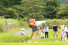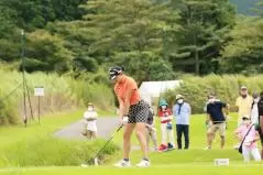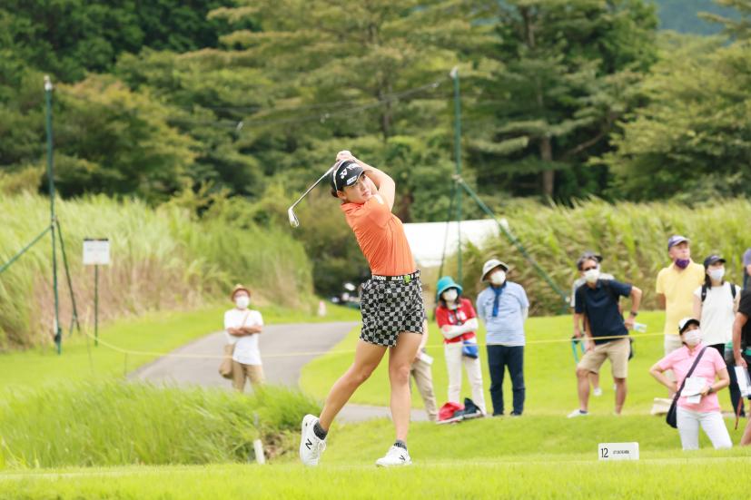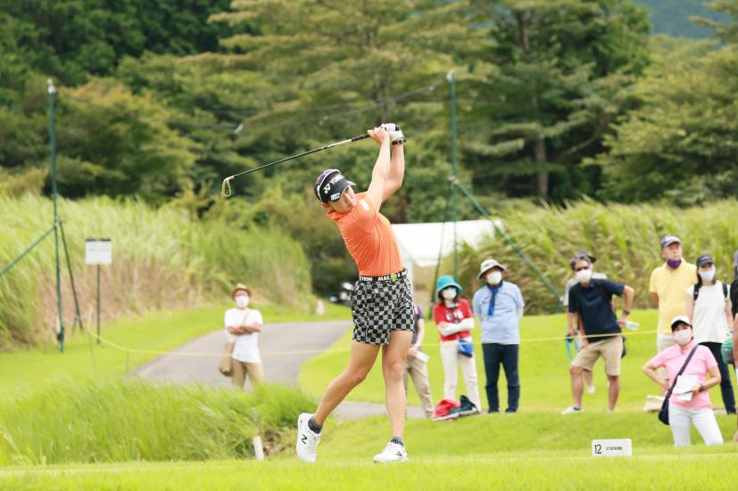 岩井千怜のアイアンスイング(斜め前方)|フォロー①