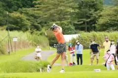 岩井千怜のアイアンスイング(斜め前方)|ダウンスイング①