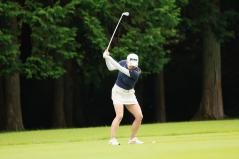勝みなみのアイアンスイング(斜め後方)|フォロー①