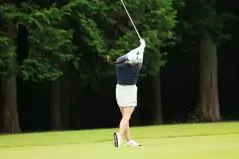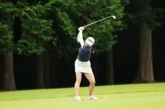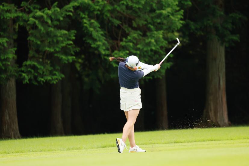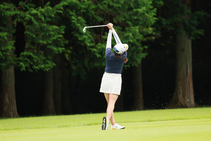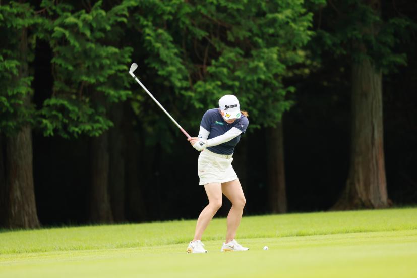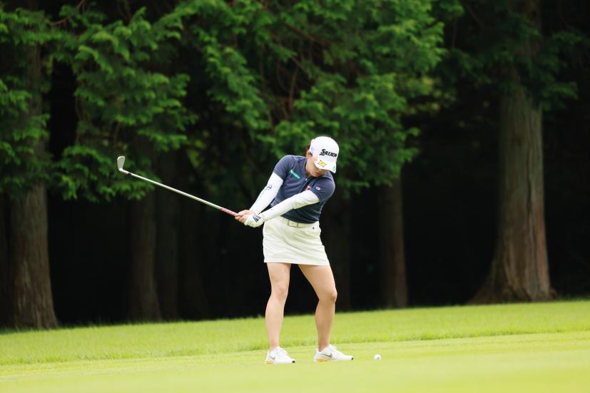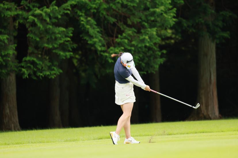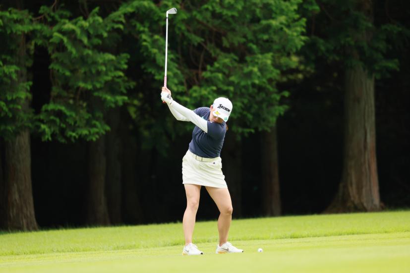 勝みなみのアイアンスイング(斜め後方)|フォロー①