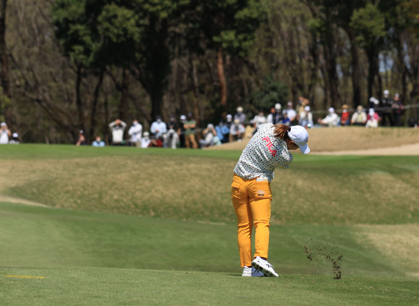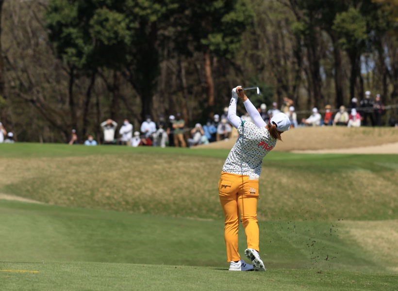 西郷真央のアイアンスイング(後方)|インパクト