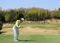 比嘉真美子のアイアンスイング(後方)|フォロー①
