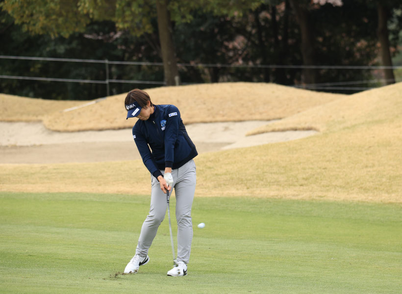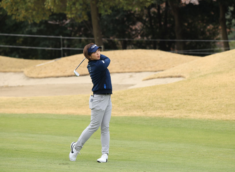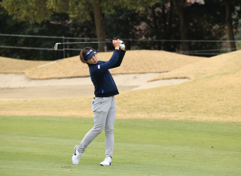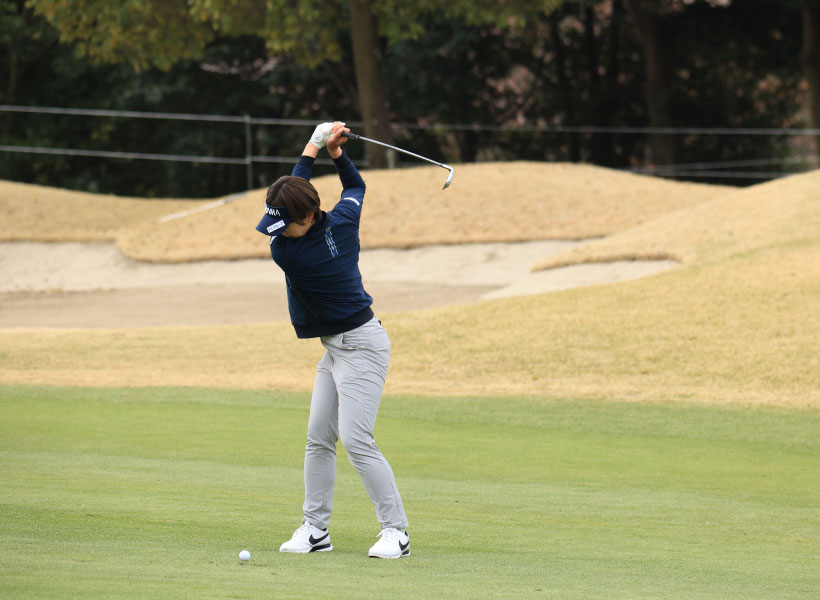 葭葉ルミのアイアンスイング(斜め前方)|フォロー①