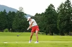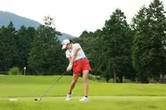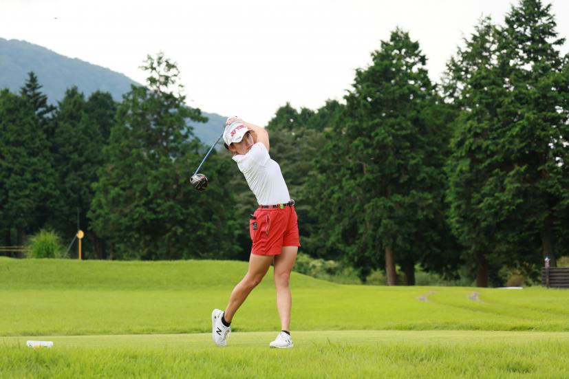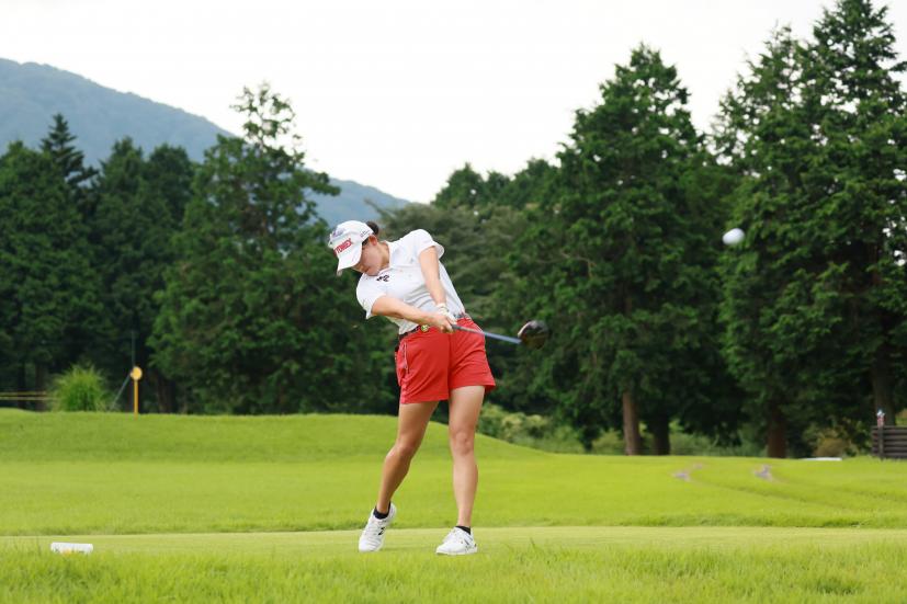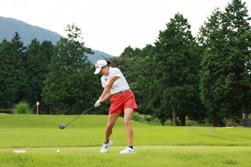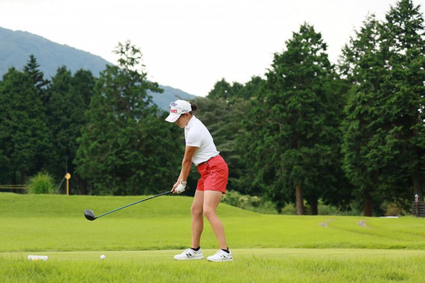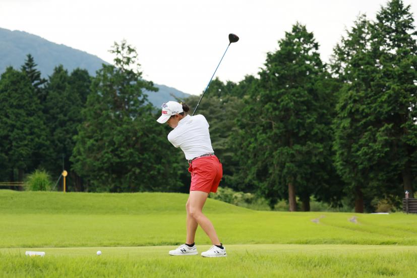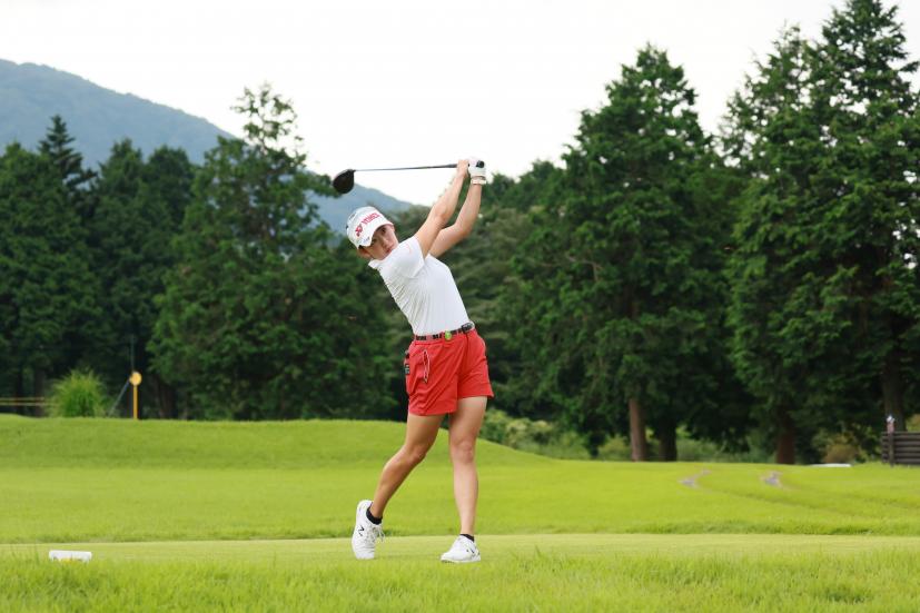 岩井千怜のドライバースイング(斜め前方)|フォロー①