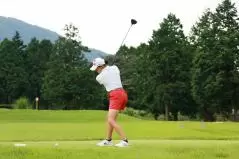 岩井千怜のドライバースイング(斜め前方)|バックスイング①