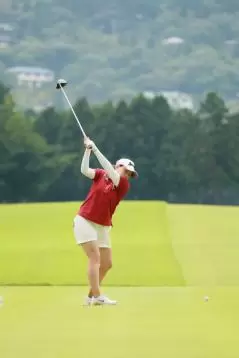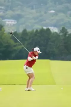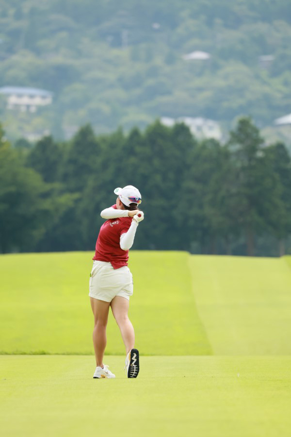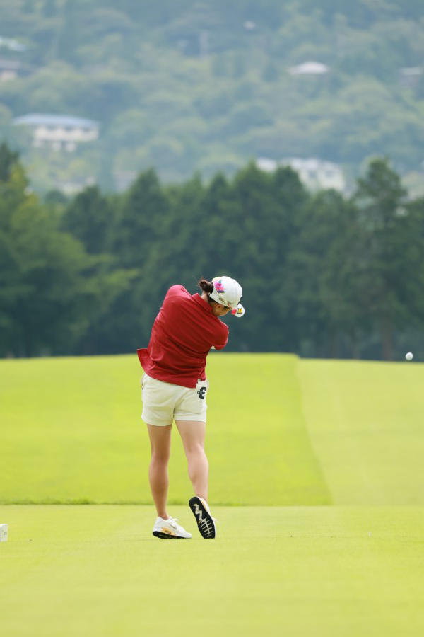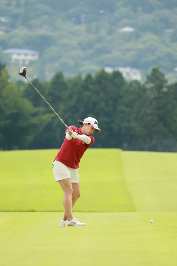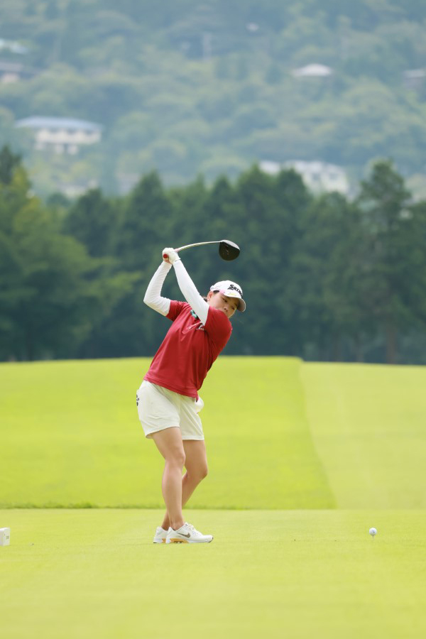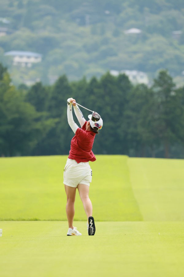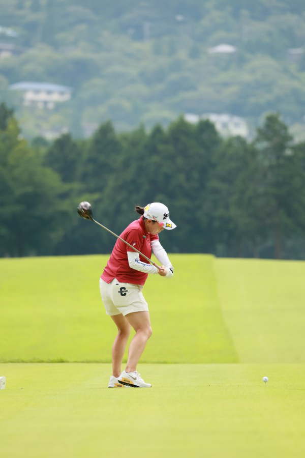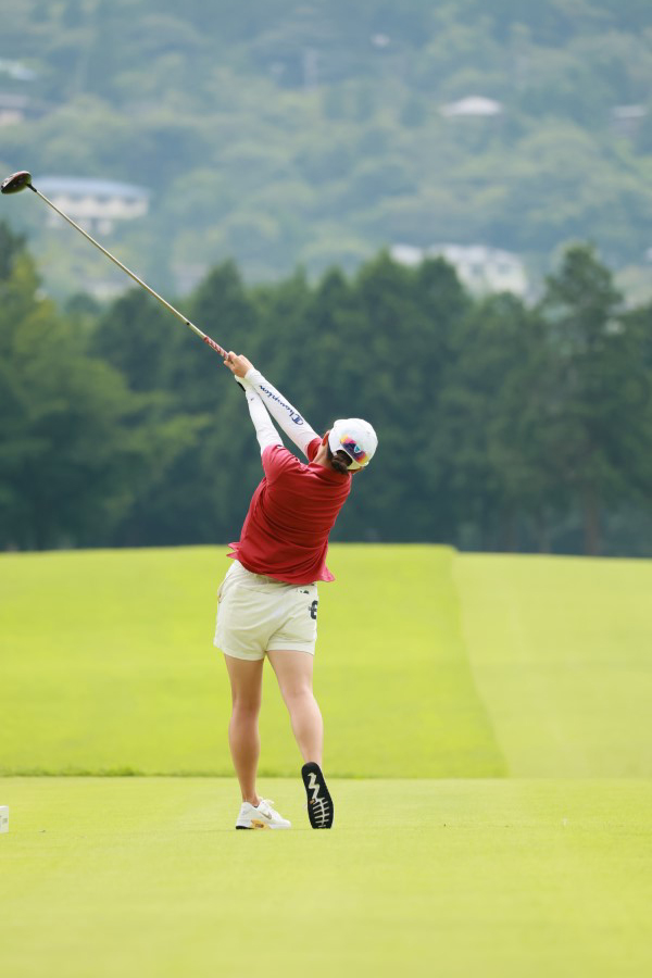 勝みなみのドライバースイング(後方)|フォロー①
