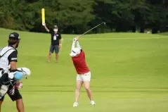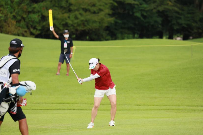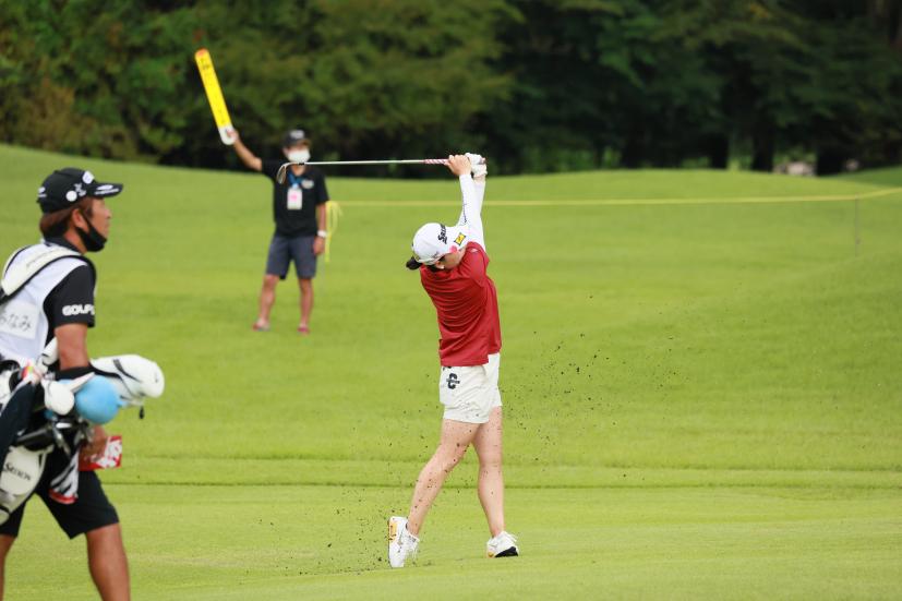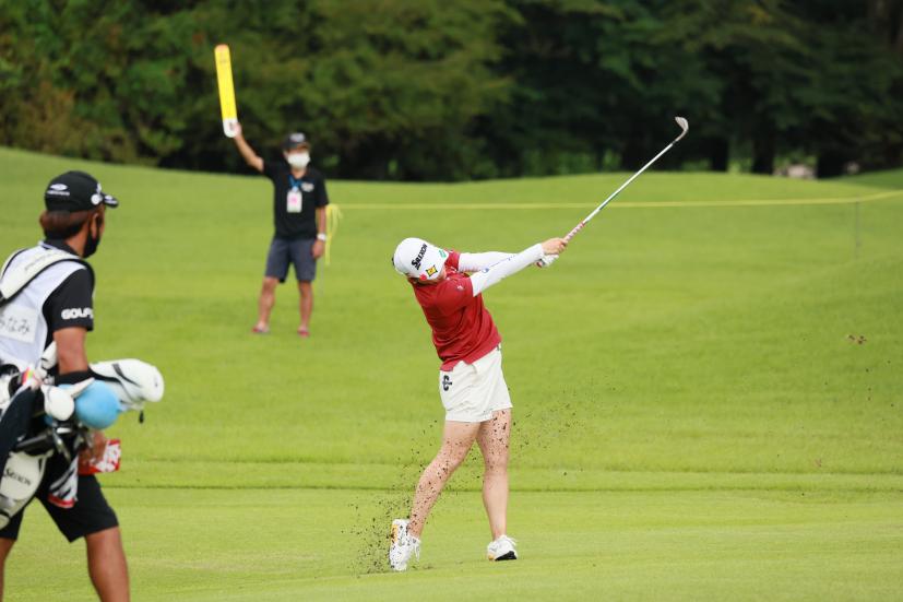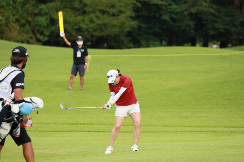勝みなみのアプローチスイング(正面)|ダウンスイング①
