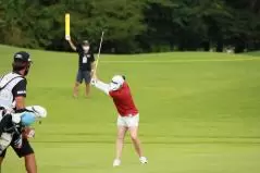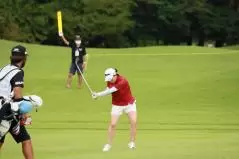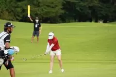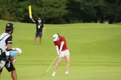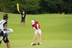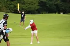 勝みなみのアプローチスイング(正面)|バックスイング①