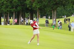 勝みなみのユーティリティスイング(左足下がり)|フォロー①