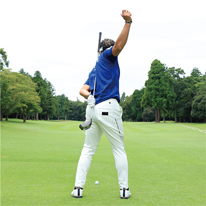インパクトでは左頬が上がらないように注意