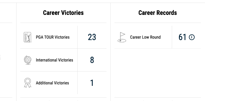 ウッズは22.1%と別格だが、マキロイの10.4%は本当にすごい数字である。たとえば、マキロイを上回る135週も1位になったダスティン・ジョンソンは7.8%。優勝数ではマキロイより多い24勝だが出場試合数が多く、勝率ではマキロイの圧勝である。