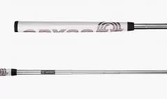 オデッセイから昨年春に発売した「DFXパター」の派生モデルとして、女性ゴルファー専用の「DFX Women’sパター」が登場。いちばんの大きな特長はカラーリング。ヘッド全体がホワイトカラーで覆われ、サイトラインやロゴにはローズゴールドを採用し、グリーン上でも映える、目を引くとても美しいビジュアルとなっている。本体のみでなくグリップと付属のヘッドカバーもホワイトを基調としたカラーリングが採用されている。