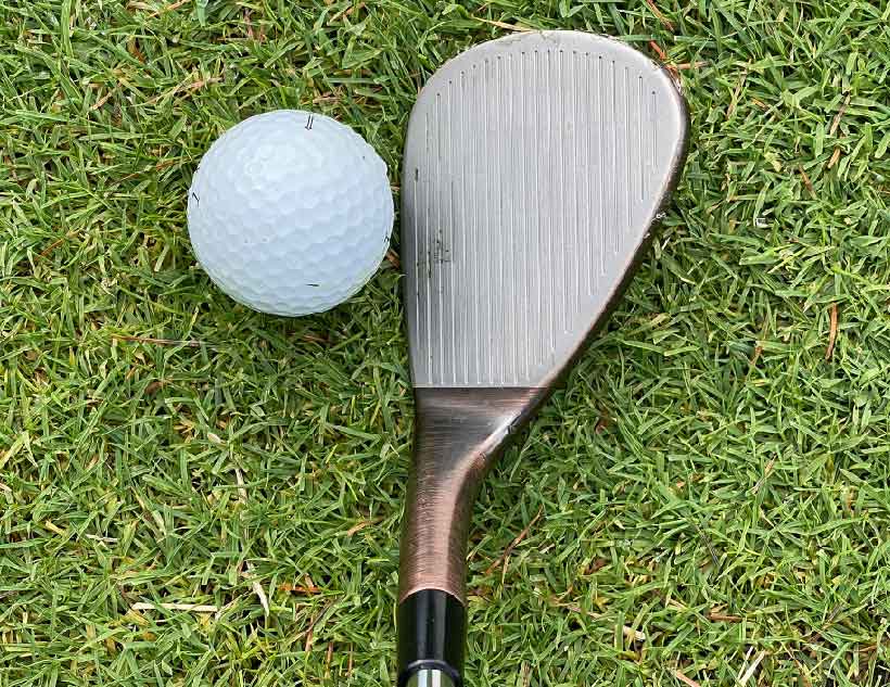そしてフェース全面に溝があるのも特徴的です。これはフェースを開いて使うときでも、溝がしっかりとボールを捉えて安定したスピン性能を発揮するためなんですね。