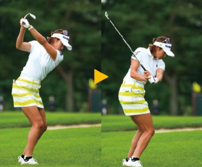 左足への体重移動がスムースになることで、緩やかなダウンブローでボールをとらえることができ、タテの距離感も合うようになった。