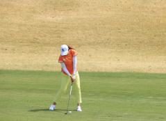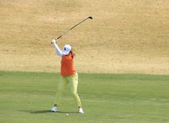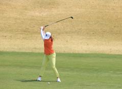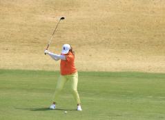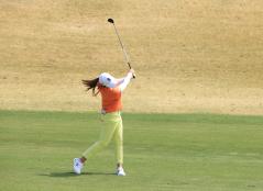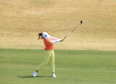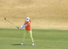 稲見萌寧のユーティリティスイング(正面))|フォロー②