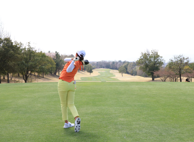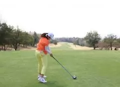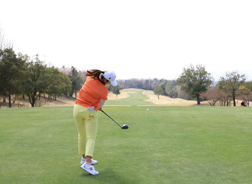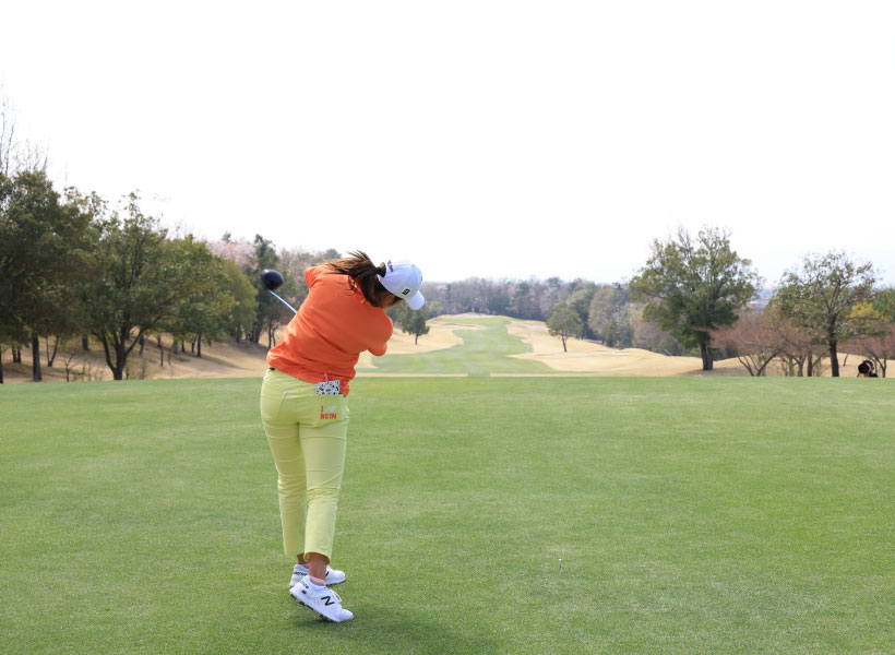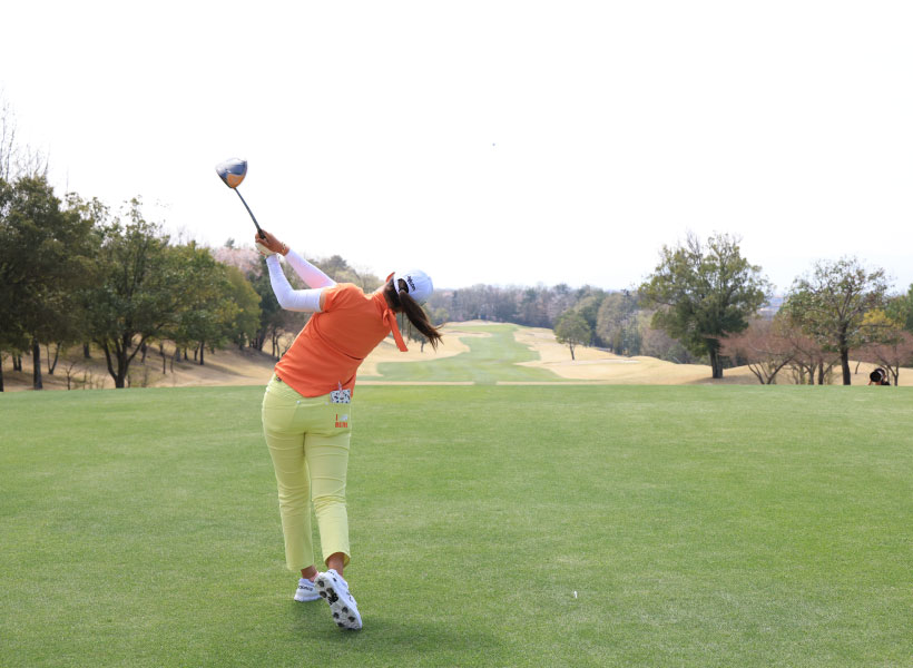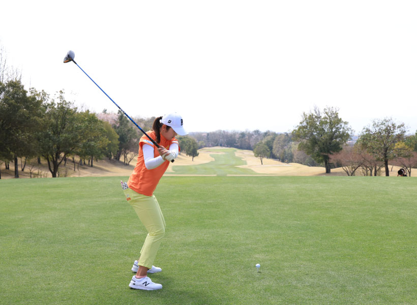 稲見萌寧のドライバースイング(後方)|フォロー①