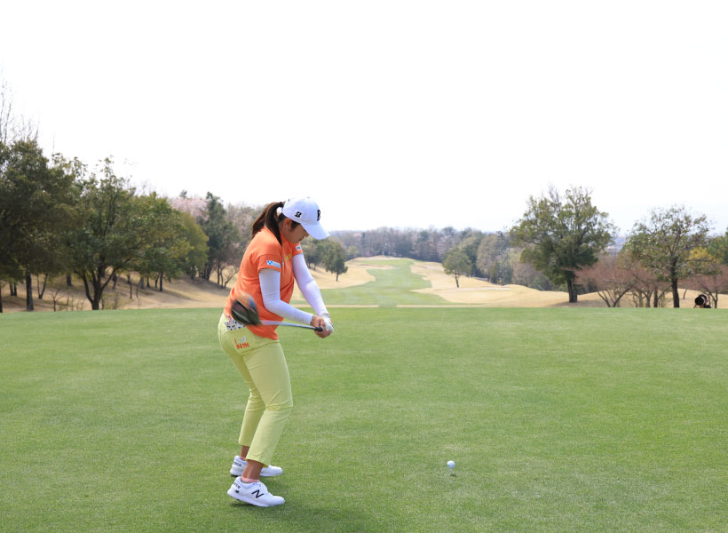稲見萌寧のドライバースイング(後方)|インパクト