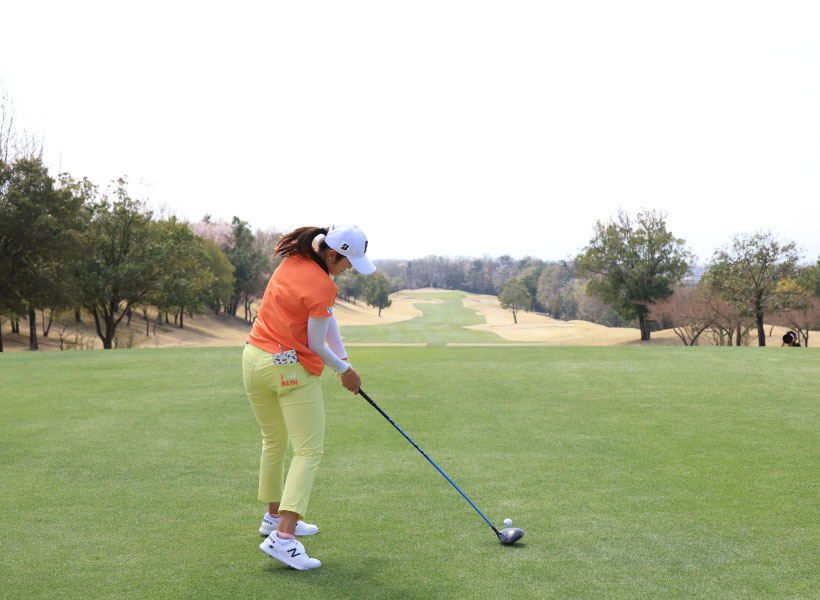 稲見萌寧のドライバースイング(後方)|ダウンスイング①