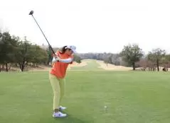 稲見萌寧のドライバースイング(後方)|フィニッシュ