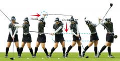 ただし、彼女のような高いトップはオススメしません。高いとダウンスイング時の軌道がバラつき新たなミスを誘発してしまうので、無理せず上げて下ろせるスイング幅でOK。