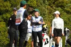 17番ホールのティーイングエリアで盛り上がる女子プロたち