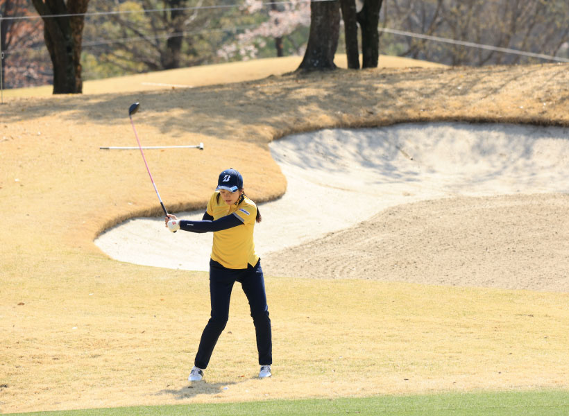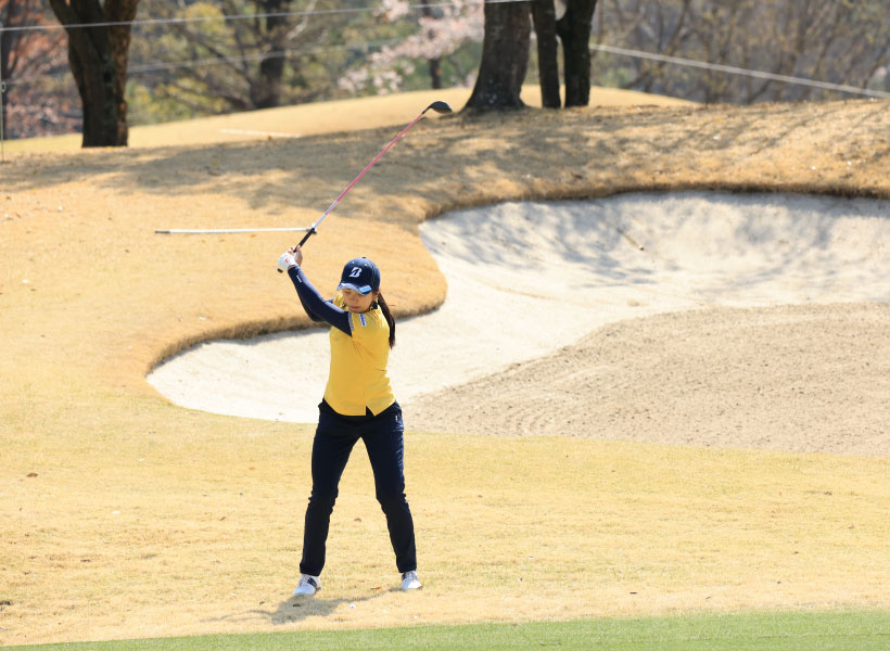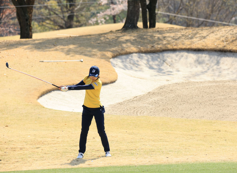 堀琴音のフェアウェイウッドスイング(正面)|フォロー①