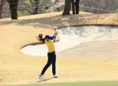 堀琴音のフェアウェイウッドスイング(正面)|フォロー②