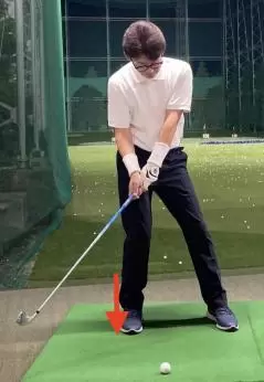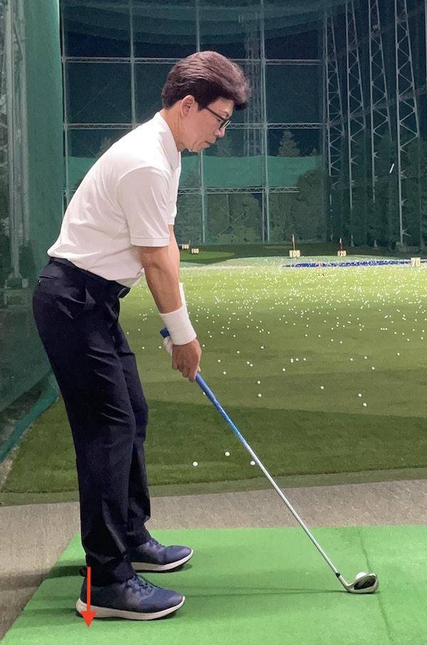 スムーズな体重移動を行うコツその1は、アドレス時に左右の足の体重配分に気をつけることです。