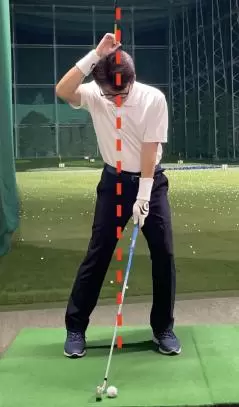 アドレス姿を正面から見た場合、バックスイングで右腰が右方向へ1センチでも動いたらスウェーです。1センチ横へズレた分だけ、スイング軸もズレるので、ジャストミートの確率は下がります。