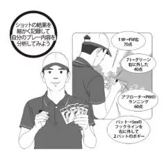 グッドショットでもどこに打ったのか、ミスしたならどんなミスをしたのか。クラブ別のショットの点数を90点、70点、50点などとつけておくのもいい。