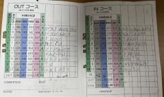 スコアの記入欄には各ホールで使ったクラブとそのショットの評価を〇、△、×で評価しています。〇はイメージ通り、△は想定内のミスショット、×はミスショットです。△の想定内のミスショットとは、次のショットでリカバリーできる程度の内容。×のミスショットはOB、1ペナ、林の中等の1打以上のロスにつながるものとして評価しています。