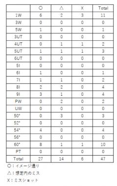 最後に、私はラウンドで使ったクラブの評価をエクセルで集計しています。ラウンドでどのクラブを何回使っているのか、クラブ毎のショットの評価の傾向を確認できます。