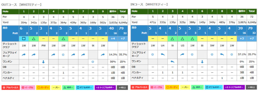 私はラウンドの目標スコアを79回に設定しています。シングルプレーヤーになってもなかなか70台でラウンドすることができていないので、このような目標を設定しています。