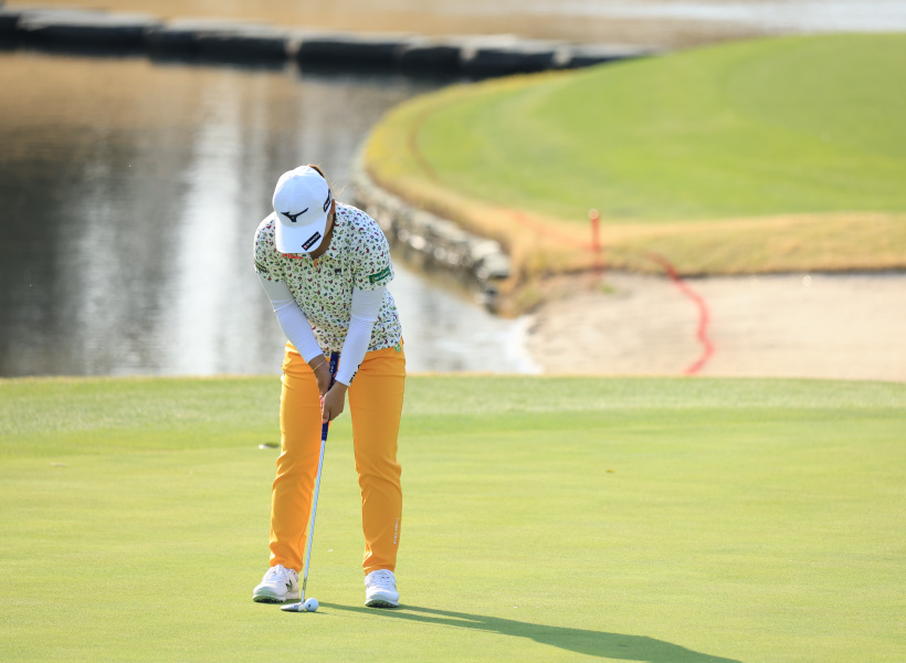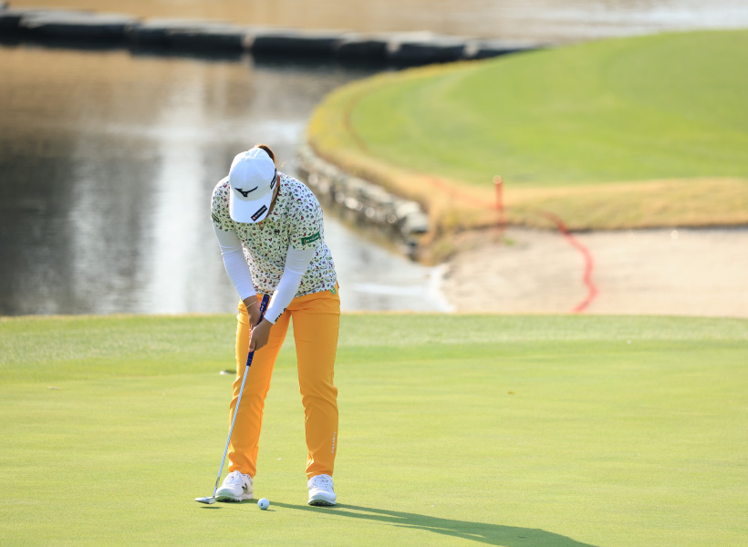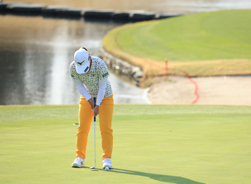 西郷真央のパッティングストローク(正面)|フィニッシュ